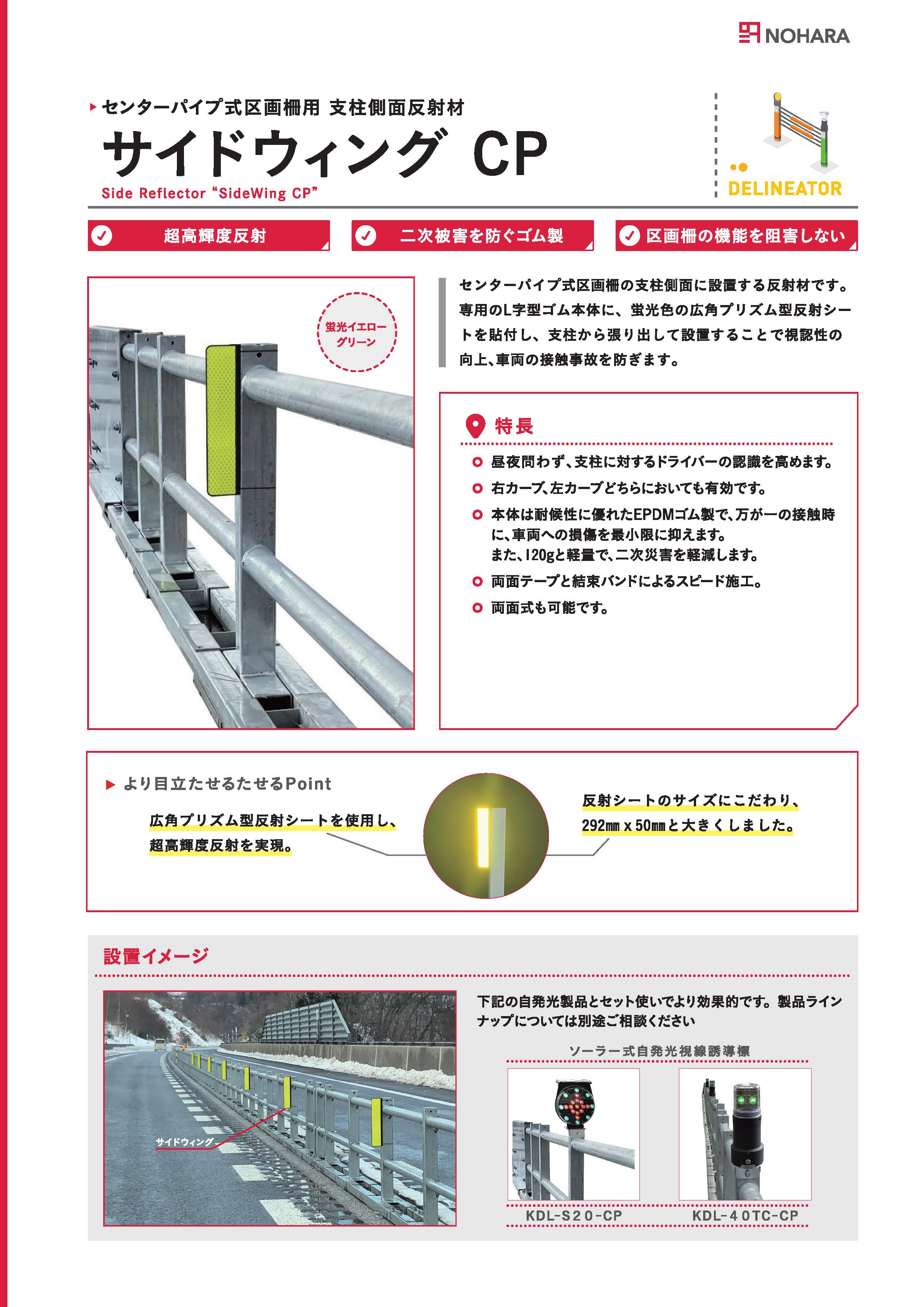 センターパイプ式防護柵用支柱側面反射材「サイドウィングCP」の発売開始についてお知らせいたします。